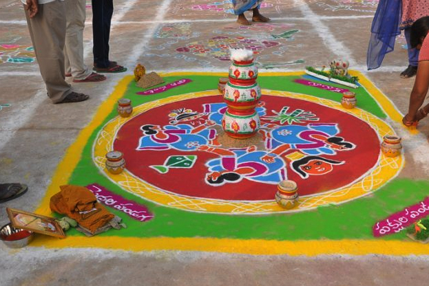 గంగిరెద్దుల విన్యాసం, ముత్యాల ముగ్గులు, సాంప్రదాయ నృత్యాలు, కీలు గుర్రాలు, డప్పు వాయిద్యాలు, హరి దాసులు, కోలాటాలతో పండగ వాతావరణంతో వీఆర్సీ మైదానం కలకలలాడింది.