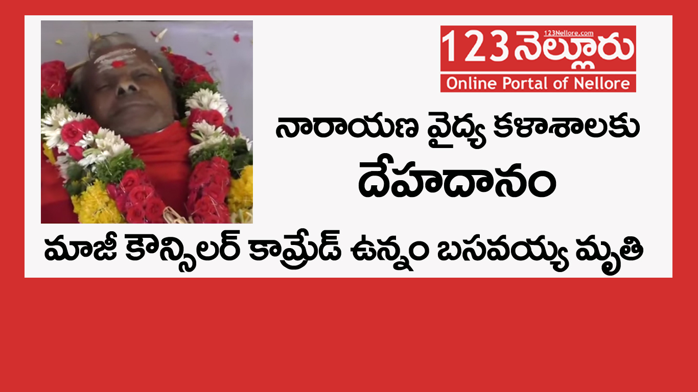 సీపీఎం పార్టీ సీనియర్ నాయకులు, గతంలో మూడు సార్లు కౌన్సిలర్ గా ఎన్నికైన కామ్రేడ్ ఉన్నం బసవయ్య అనారోగ్యం కారణంగా మంగళవారం మృతి చెందారు. ఆయన మరణంలోనూ ఆదర్శంగా నిలిచారు. కుటుంబ సభ్యులు ఆయన భౌతిక కాయానికి అంత్యక్రియలు నిర్వహించి ఆయన అభీష్టం మేరకు వైద్య విద్యార్థుల పరిశోధనల నిమిత్తం నారాయణ వైద్య కళాశాలకు దేహాన్ని దానం చేసారు. ఆయన భౌతికదేహాన్ని పలువురు నాయకులు సందర్శించి ఘనంగా నివాళులు అర్పించారు. ఇప్పుడు ప్రజలకు ఎంతగానో ఉపయోగపడుతున్న విజయమహల్ బాక్స్ టైపు బ్రిడ్జి బసవయ్య కృషే అని ఈ సందర్భంగా తెలియజేసారు. సారా వ్యతిరేక ఉద్యమంలో బసవయ్య కీలక పాత్ర పోషించారన్నారు. నెల్లూరు రూరల్ ఎమ్మెల్యే కోటంరెడ్డి శ్రీధర్ రెడ్డి, సీపీఎం సీనియర్ నాయకులు జక్కా వెంకయ్య, సీపీఎం జిల్లా కార్యదర్శి చండ్ర రాజగోపాల్, నగర కార్యదర్శి మూలం రమేష్, నాయకులు శ్రీరాములు, మోహనరావు తదితరులు నివాళులు అర్పించిన వారిలో ఉన్నారు.