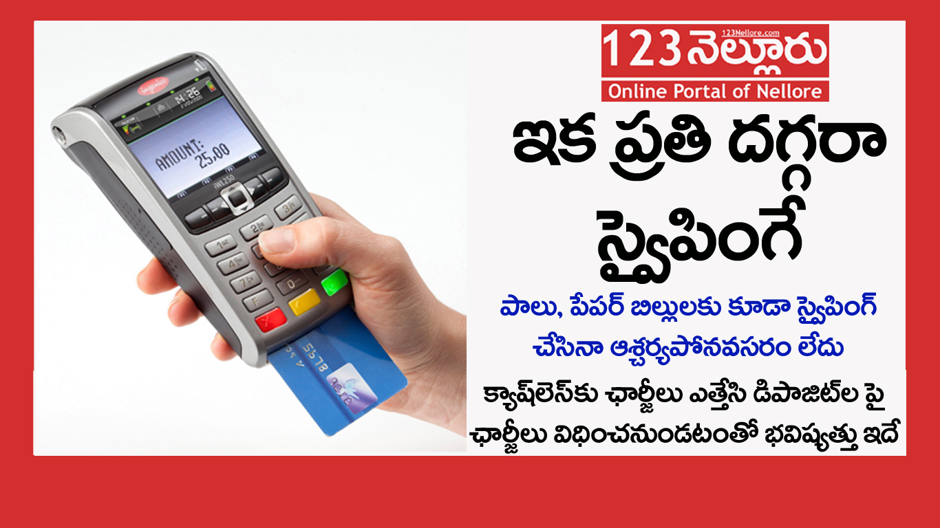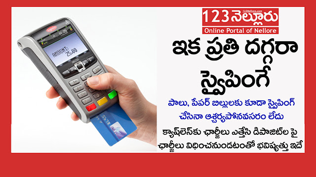 - నెల్లూరు నగరంలో అనేక వ్యాపారస్తులు ఇప్పటికే బ్యాంకులకు స్వైపింగ్ మెషీన్లు కావాలని దరఖాస్తులు పెట్టుకుని ఉన్నారు, ఇలా ఇప్పటికి 15000 దరఖాస్తులు ఉన్నట్లు సమాచారం