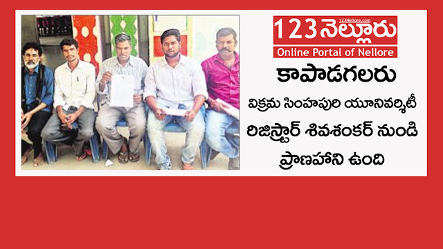 “అయ్యా నాకు విక్రమ సింహపురి యూనివర్శిటీ రిజిస్ట్రార్ శివశంకర్ మరియు ఆయన అనుచరుల నుండి బెదిరింపులు వస్తున్నాయి. నాకు ప్రాణహాని ఉంది. నన్ను తీవ్రంగా వేధిస్తున్నారు. దయచేసి నాకు రక్షణ కల్పించగలరు.” అంటూ ప్రాధేయపడుతున్నాడు వర్శిటీ లో విధులు నిర్వహించే శాశ్వత ఉద్యోగి అయిన ఆములూరు ప్రసాద్. ఈ విషయమై స్థానిక అంబేద్కర్ భవన్ లో ఆయన విలేకరుల సమావేశం ఏర్పాటు చేసారు. గత కొన్ని సంవత్సరాలుగా ఎంతో నమ్మకంగా వర్శిటీలో వీసీల దగ్గర డ్రైవర్ గా విధులు నిర్వహిస్తున్నానని, ఇప్పుడు కొంతమంది చెప్పుడు మాటలు విని కక్ష్య పూరితంగా రిజిస్ట్రార్ శివశంకర్ తనకు స్థాన చలనం కల్పించారని దానికి సంసిద్ధత వ్యక్తం చేయని తనని వేధించడం మొదలెట్టారని ఎస్సీ అయిన తనను నీ హోదా ఎంత అంటూ కులం పేరుతో దూషిస్తున్నారని దీంతో పొలిసు స్టేషన్ లో ఎస్సీ/ఎస్టీ అట్రాసిటీ ఫిర్యాదు చేసినట్లు పేర్కొన్నారు. తనకు శివశంకర్ నుండే కాకుండా ఆయన అనుచరుల నుండి కూడా బెదిరింపులు వస్తున్నాయని ఆందోళన వ్యక్తం చేసారు. తనకు రక్షణ కల్పించాలని వేడుకున్నారు. ఈ కార్యక్రమంలో ఎస్సీ ఎస్టీ మానిటరింగ్ కమిటీ సభ్యులు హరిబాబు, దళిత నాయకులు చిరంజీవి, బాలసుబ్రహ్మణ్యం, స్వరూప్, కిరణ్ తదితరులు పాల్గొన్నారు.